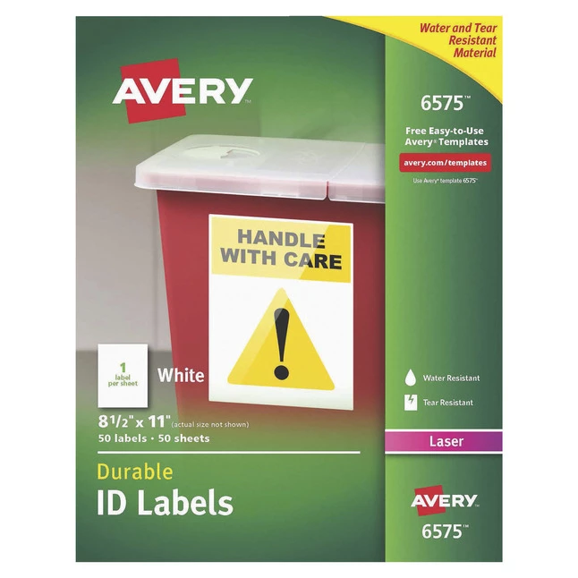 Mark small, loose objects with the name of the owner and identify where it belongs with Durable ID Labels. It’s easier to find what you need when everything has its place. With TrueBlock Technology, labels cover up what’s underneath so you can easily reuse boxes or relabel surfaces. Slender size makes these labels ideal for labeling tools, containers and shelf space. These sturdy polyester labels stand up to frequent use and resist moisture, scuffing, tearing and smudging. The permanent adhesive sticks to a variety of surfaces, including paper, glass, plastic and metal. Labels are easy to customize with free online templates and designs and compatible with laser printers.