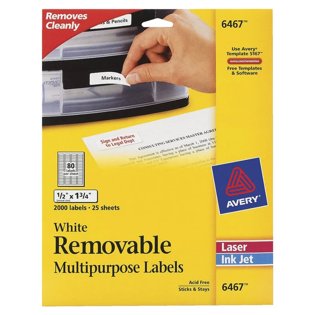 ID labels stick, stay and remove cleanly to make changes and revisions. The rectangular shape makes them ideal for binders, diskettes, file folders, cassettes, drawers, containers, boxes, shelves and more. Labels adhere to smooth surfaces, including paper, cardboard, plastic, wood, glass and metal. Labels are compatible with laser and inkjet printers. Avery offers many easy-to-use templates for Microsoft and many other popular software programs.