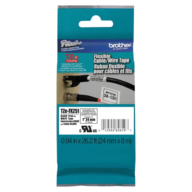 This flexible tape features Brother’s exclusive laminated tape process and a specially formulated adhesive. The adhesive is designed to stick to itself as well as to laminate. Great for wrapping around an item, the tape is perfect for labeling cylindrical surfaces such as cables, PVC piping and more. It is best suited for wire wrapping and flagging. Tape is designed for use with Brother P-touch Labelers using TZ or TZe tapes. They include PT-D200, PT-D210, PT-H100, PT-1010, PT-1090, PT-1230PC, PT-1280, PT-1290, PT-1830, PT-1880, PT-2100, PT-2110, PT-2030, PT-2030AD, PT-2030VP, PT-D400, PT-D400AD, PT-D400VP, PT-D450, PT-H300, PT-H300LI, PT-2430PC, PT-2700, PT-2710, PT-2730 and PT-2730VP.