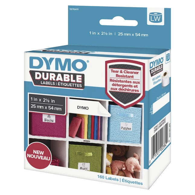 Durable labels feature an industrial-strength adhesive to create a strong bond that’s suitable for use in tough conditions. Water-resistant design also withstands UV-light, heat, humidity, household cleaners and freezing conditions for safe indoor or outdoor use. Scratch-resistant surface resists fading to ensure your text stays legible over time. Labels are perfect for use in kitchens, pantries, utility cupboards, laundry rooms, workshops, garages and more. Labels are designed for use in LabelWriter 450, 450 Turbo, 450 Twin Turbo, 450 Duo and 4XL printers (sold separately).