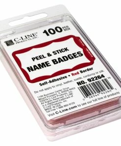 Discount ✔️ C-Line Adhesive Name Badges, 3-1/2 X 2-1/4 Inches, Red Border, Pack Of 100 🔔