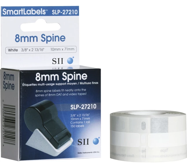 Professional media labels feature a compact, narrow size to fit neatly onto the spines of 8mm digital audio tapes and cassette video tapes. Strong self-adhesive allows instant application and stays securely attached to prevent peeling. Easy-to-use labels allow you to quickly replace depleted rolls. Media labels are designed for Seiko 100, 120, 200, 220, 240, 410 and 420 or above printers (sold separately).